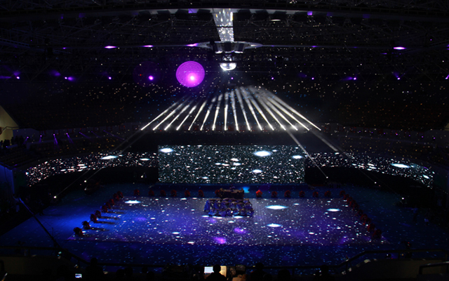 ??經(jīng)典影視負(fù)責(zé)開幕式高清LED視頻設(shè)計制作,及現(xiàn)場視頻導(dǎo)播切換。臺州市首屆體育大會LED視頻制作花了一年策劃設(shè)計,三個月動畫合成,總共600多平方的高清LED,300平方的地坪,一直修改校色,終于完美展現(xiàn)!高科技的光影交響,超震撼的視覺享受。得到了市領(lǐng)導(dǎo)的高度肯定。一次巨大的挑戰(zhàn),一次唯美的綻放。于無聲處傾聽生命,于燦爛處感受陽光。