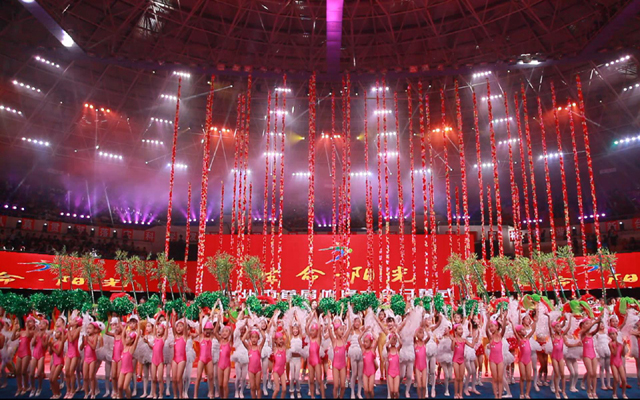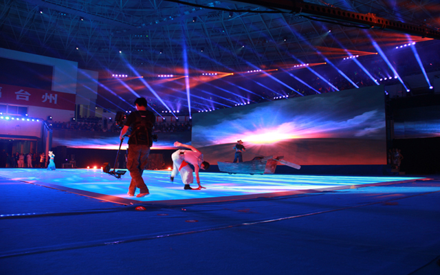 ??我公司負(fù)責(zé)LED視頻設(shè)計,現(xiàn)場視頻高清導(dǎo)播。臺州市首屆體育大會開幕式暨大型文體表演在椒江體育中心隆重舉行,共有來自各縣(市、區(qū))、各行業(yè)系統(tǒng)和部分企業(yè)的代表團(tuán)近千人參加了開幕式。開幕式文體表演的主題是“生命·陽光”,分為序曲《生命》、上篇《山海的交響》、下篇《城市的脈動》和尾聲《陽光》四個部分。 。