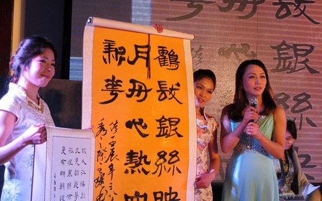 ??女教職工才藝展示,首先在市聯(lián)合藝術(shù)學校的器樂小合奏《金蛇狂舞》中拉開序幕,接著是市中心幼兒園24位女教工表演了以《秀》為主題的時裝表演,有錦園小學鐘丹卿等9人的歌伴舞《西廂聽琴》,然后是大溪四中、溫西中學、松門三小、市實驗學校、箬橫鎮(zhèn)中、松門小學等校女教師表演的書法、國畫和剪紙,并當場向臺下的領(lǐng)導(dǎo)和觀眾贈送自己的作品,許黎野副市長上臺接受禮品,并向全市女教工表示節(jié)日祝賀。聯(lián)合藝校、澤國三中、三星小學、太平小學女教師表演的古箏合奏,中間串插著給男同胞做衣服游戲,引得大家哈哈大笑。還有市職技校女教師的獨舞《翠狐》,大溪小學、岙環(huán)中學、松門三小、城北小學、市職枝校等校的中外歌曲聯(lián)唱,還有市四中、澤國四中、橫湖小學、方城小學的詩歌朗誦和大溪小學的《數(shù)蛤蟆》,最后在澤國中學、松門三小、市中心幼兒園熱鬧的歌伴舞《愛我中華》中降下帷幕。與會領(lǐng)導(dǎo)上臺向女教職工祝賀演出成功并合影留言。